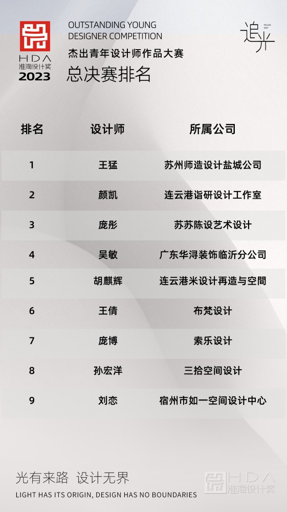 随着总决赛尘埃落定。2023年度淮海设计奖的所有奖项也随之产生。我们近期将在官方平台公布获奖设计师详细榜单,敬请留意!