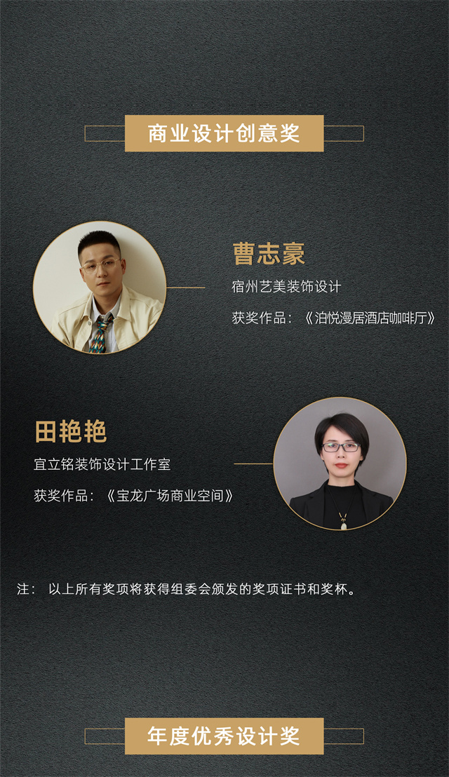 PS:2024年度淮海设计奖颁奖盛典将于12月26日举办,请以上获奖设计师安排好时间,前来现场领奖,获取个人荣誉!